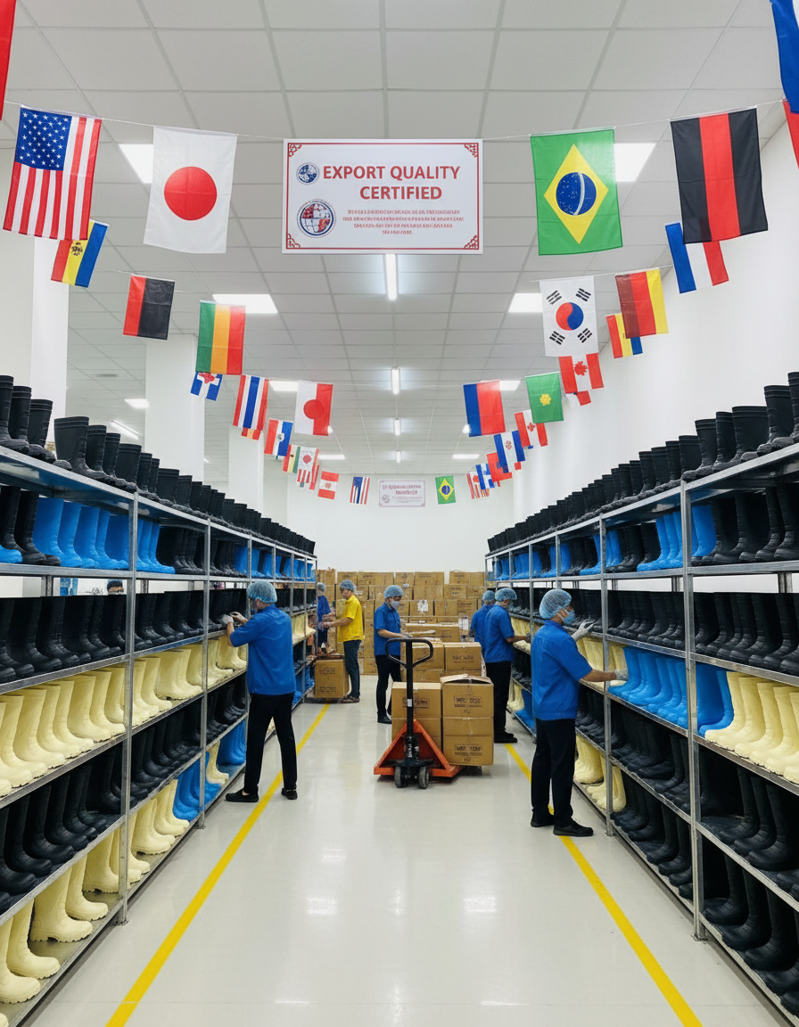 Precision-engineered PVC boots crafted for international distributors. Reliable protection from Vietnam's leading industrial footwear manufacturer.